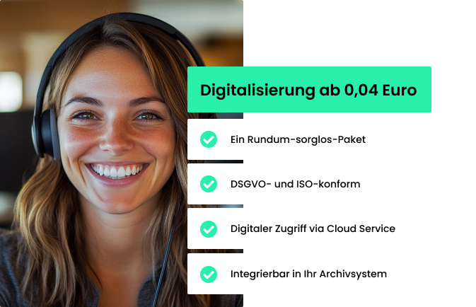 Bereits ab 0,04 € pro A4-Seite – effiziente und kostengünstige Digitalisierungslösungen für Ihr Unternehmen.